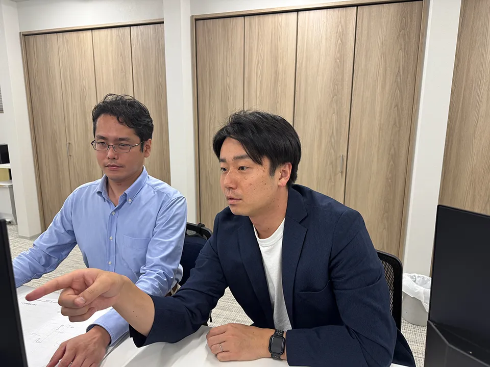 その後は設計や営業業務を行い、並行してプロジ​ェクトの進行を確認し、必要に応じてサポートし​ます。